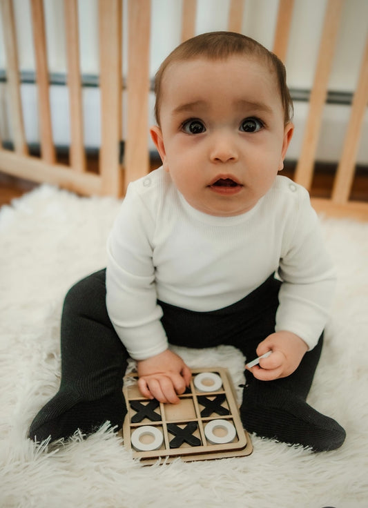 Two Toned B/W Ribbed Footie
