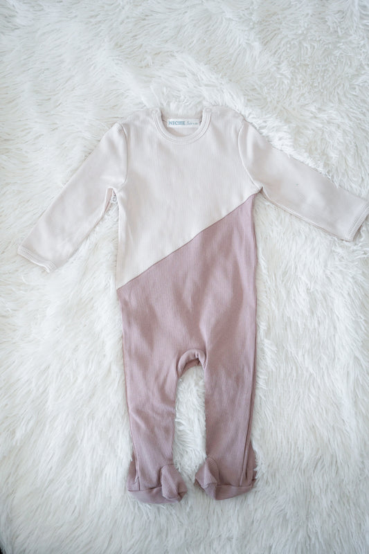 Two Toned Rose Ribbed Footie